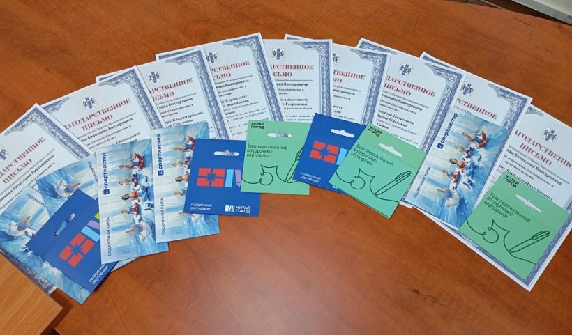 Им были вручены благодарственные письма депутата Законодательного Собрания Вячеслава Илюхина родителям талантливых детей и подарки школьникам – подарочные сертификаты магазинов «Читай город» и «Спортмастер».