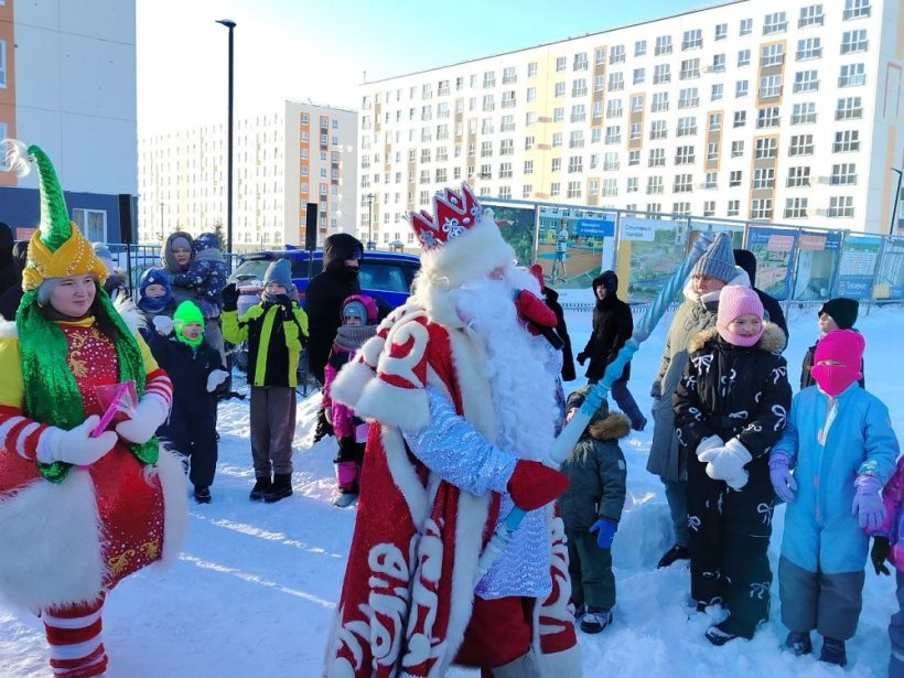 На термометре «-27», но это не помешало веселому новогоднему празднику в новом ЖК «Поколение».