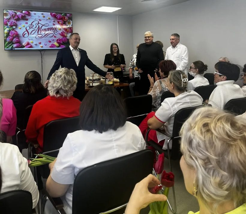 Несмотря на плотный рабочий график, депутат Законодательного Собрания Новосибирской области Вячеслав Илюхин и депутат Совета депутатов города Новосибирска поздравили медиков Городской клинической больницы № 4,
