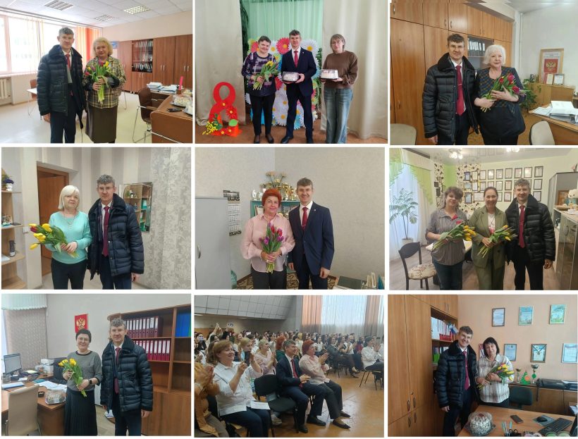 Накануне Международного женского дня депутат Законодательного Собрания Новосибирской области Вячеслав Илюхин, депутат Совета депутатов города Новосибирска Леонид Рыбин и их помощники побывали в коллективах Калининского района – школах и детских садах, медицинских и внешкольных учреждениях, чтобы поздравить женщин с праздником и поблагодарить их за труд, терпение, доброту и сердечность.