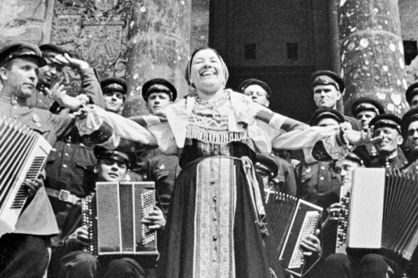 В 1945 году Русланова встретила Победу в Берлине, 2 мая 1945 года она пела вместе с казачьим ансамблем на ступенях Рейхстага и вместе с солдатами расписалась на его стенах.