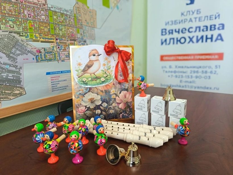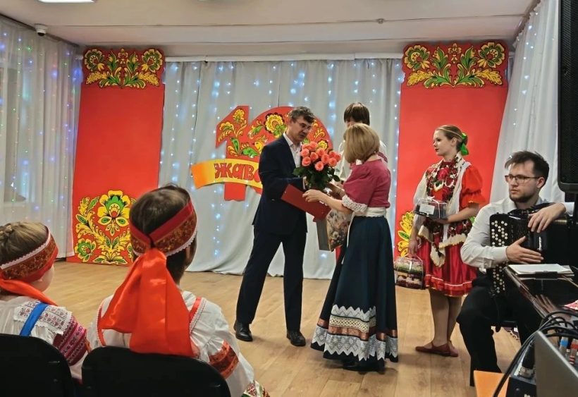 Сергей Большаков, помощник депутата Заксобрания Вячеслава Илюхина, передал детскому фольклорному ансамблю подарки от депутата: народные музыкальные инструменты и торты.