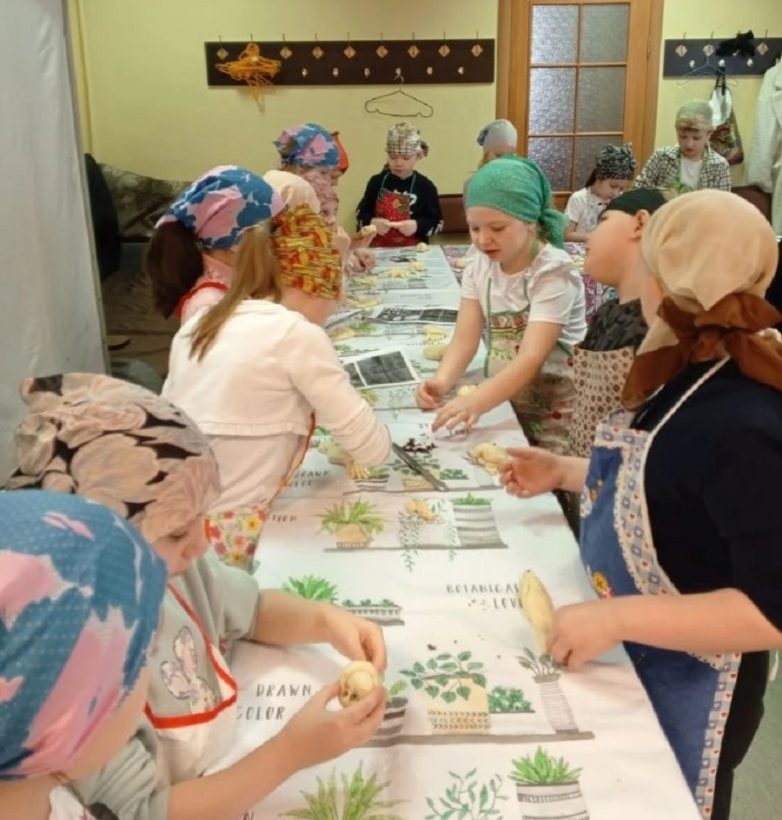 Помощник депутата Законодательного Собрания Вячеслава Илюхина Ирина Гончарова провела для первоклассников средней школы № 78, на котором ребята не только познали кулинарные секреты выпечки «жаворонков», но и узнали о народных и православных корнях этой традиции.