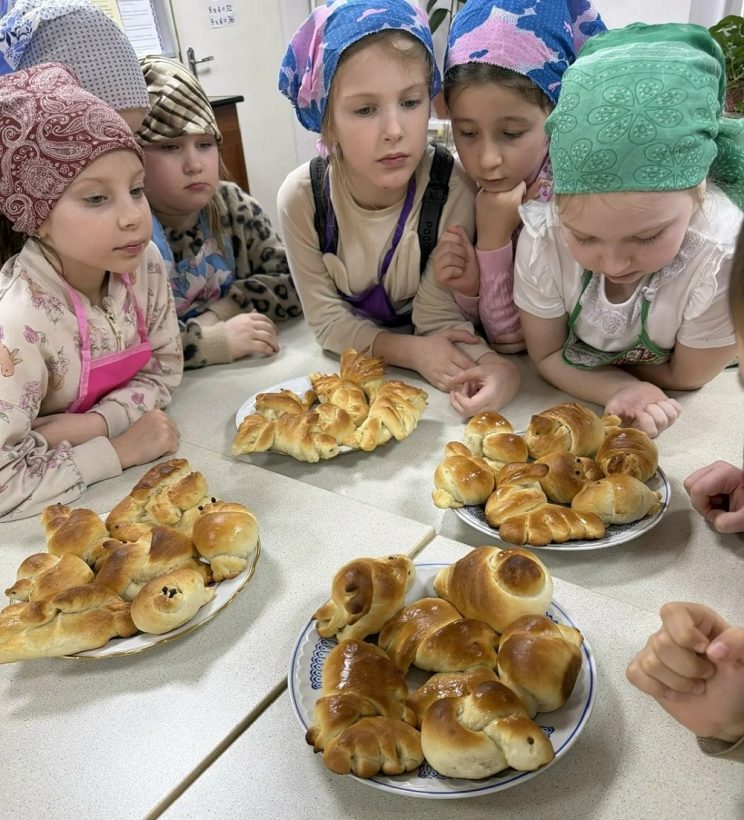 Практическую часть занятия с ребятами из 1 «А» класса школы № 78 – секреты выпечки сдобных булочек «жаворонки» – провела Ирина Гончарова. А педагог воскресной школы Ирина Иванова рассказала детям об истоках и истории этой традиции.