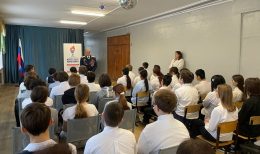 Депутат Совета депутатов, ветеран боевых действий в Афганистане Леонид Рыбин встретился с восьмиклассниками средней школы № 184 и провел для них урок мужества.